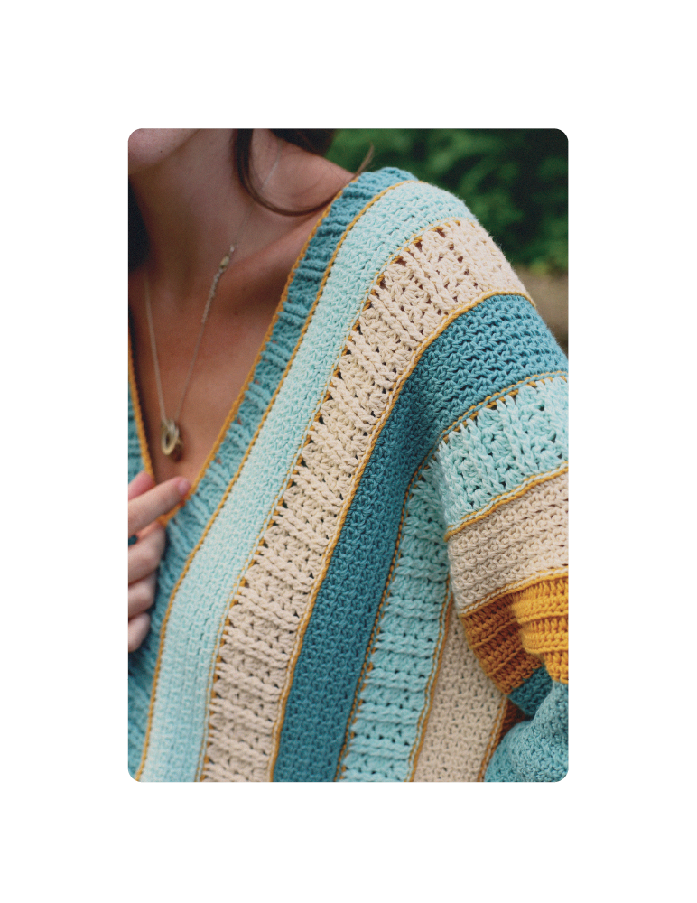 Este quadrado da avó faz-se em ida e volta. É composto por uma sequência de pontos que formam um pequeno ponto aberto e um relevo geométrico na parte inferior. Na área superior, aplica-se o ponto musgo falso para obter a malha mais fechada. Termine com um rebordo em pa. As corr de viragem contam como o 1.º pt.