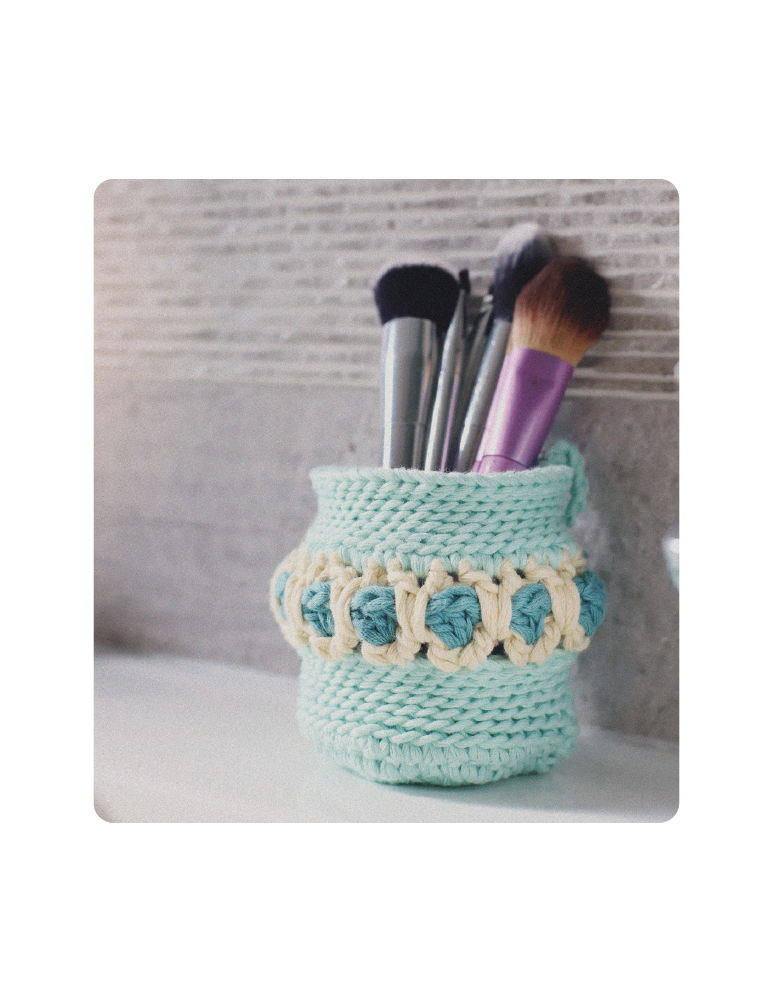 Este quadrado da avó faz-se em malha circular e passa para a forma quadrada a partir da C4. Quando acabar, faça os caracóis com corr no ar e pb sobre o corpo dos pts da C1. à C3. As corr de viragem contam como o 1.º pt. Os aum são de 2 pa.