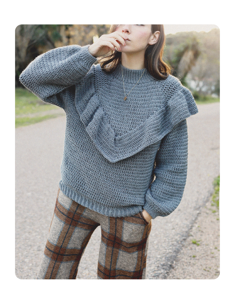 Esta peça é formada por quatro quadrados da avó pequenos, todos iguais e em malha circular, mas com uma diferente conjugação de cores. Na C2., cria-se uma flor com ppc de 5 pb. Por fim, executa-se a união das quatro peças com pbx. Para tal, prenda apenas as linhas de trás da última C das mesmas. As corr de viragem contam como o 1.º pt de cada C.