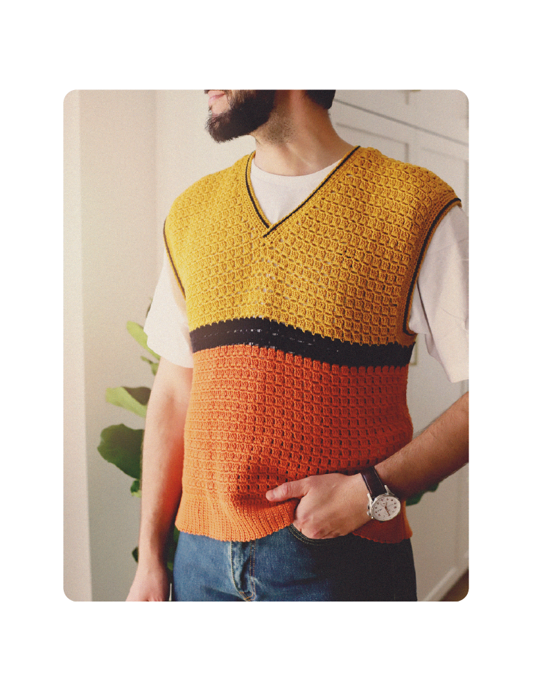 Guia de croché: ponto quadriculado e construção para cava e decote
